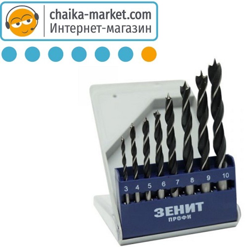Набор спиральных сверл по дереву (3-10 мм) Зенит Профи 31108310 8шт